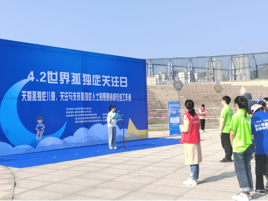 在世界第16个孤独症关注日来临之际,为动员全社会力量关心帮助孤独症人士,4月1日上午,永利集团官网特殊教育专业师生参与由达州市残疾人联合会主办的达州市2023年世界孤独症关注日主题宣传活动“爱让世界蓝起来—蓝色行动”。本次活动在巴山大剧院广场举行,70余名孤独症儿童及亲属、社会志愿者共计200余人参加此次活动。