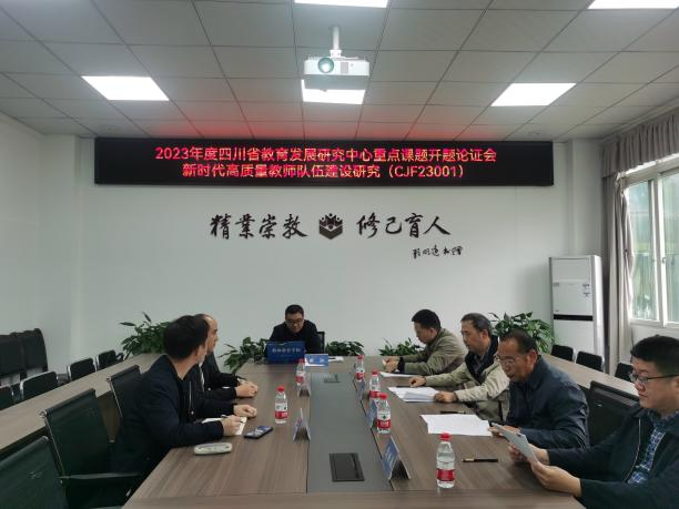 2023年11月10日,由304永利集团登录入口田江副研究员担任课题负责人的2023年度四川省哲学社会科学重点研究基地:四川省教师教育研究中心重点课题《新时代师德师风长效机制建设研究(TER2023-001)》和四川省教育发展研究中心重点项目《新时代高质量教师队伍建设研究(CJF23001)》开题论证会在博文楼206A会议室举行。学校教学督导专家何树德教授、雷钢教授,发展规划处处长、304永利集团登录入口院长黄培森教授等担任开题评议专家。论证会由304永利集团登录入口党委书记王燮辞教授主持。