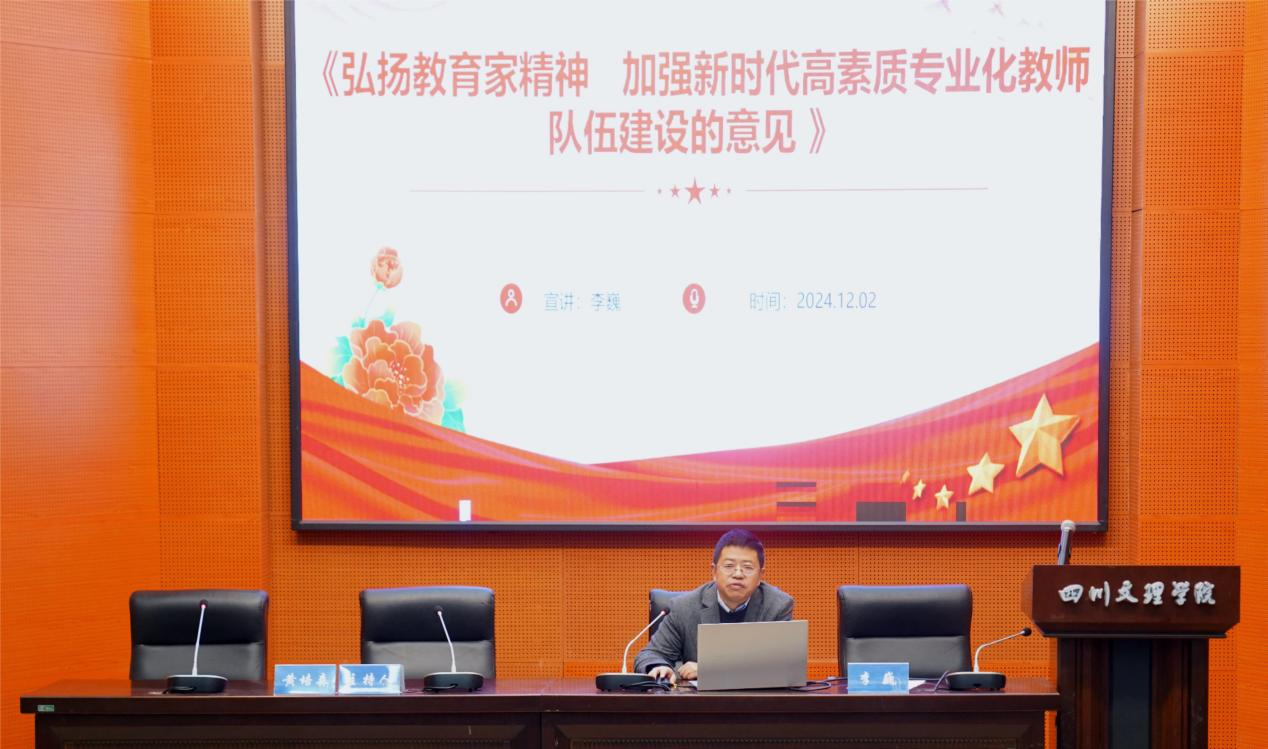 理事论坛从高校管理、乡村教育、教师发展大中小幼一体化三个方面进行分享。高校管理分论坛由内江师范学院教科院院长胡志金教授主持,成都师范学院继教院院长李巍教授点评,西华师范大学初等教育学院院长李雪平教授、成都大学师范学院院长李敏教授、川北幼儿专科学校副校长蒲远波研究员分别作分享。乡村教育分论坛由绵阳师范学院教科院院长王涛主持,西南交通大学希望学院常务副校长马贵平点评,成都师范学院小学教育系主任徐猛、宜宾市叙府实验小学书记牟正香作分享,同时,我校304永利集团登录入口博士杨士连、院长黄培森教授为与会教师在2024年国家社会科学基金项目——以“向乡性”为核心特质的乡村教师育人能力生成逻辑与提升机制研究的基础上分享了“乡村教师的向乡性”这一内容。教师发展大中小幼一体化分论坛西南科技大学马克思主义学院蒋平教授主持,川北幼儿师范高等专科学校初等教育学院院长任婧点评,泸州职业技术学院师范学院院长王少军、宜宾市叙州区教学研究与教师培训中心教科室主任易宗勇、宜宾市叙州实验小学校校长黄黎明、宜宾三江新区洗马池幼儿园园长凌英分别作报告。