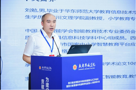 本次大会以“数智赋能、融合创新、特色发展——为建设教育强国和治蜀兴川贡献应用型本科高校智慧”为主题,围绕应用型本科高校在新质生产力蓬勃发展的背景下,如何构筑智慧教学新生态、产教融合新范式、特色发展新模式的思路和举措等展开了广泛的研讨和交流。永利集团官网刘勉、黄培森等教师撰写的论文《智能教育素养影响因素及结构路径研究——基于全国1114名师范生的样本数据》,以翔实的数据、科学的分析,明确了智能教育素养由“智能教学意识”、“智能教学运用”、“智能教学体悟”和“智能教学伦理”四个因素构成,并且四个因素存在直接正向线性结构路径。该论文得到了评审专家的认可,获得了本次大会学术论文的特等奖。刘勉老师代表论文组成员在本次大会“AI赋能教育革新与人才培养”分论坛上作交流发言,其富有学术性的严谨论述,获得了与会学者的一致好评。