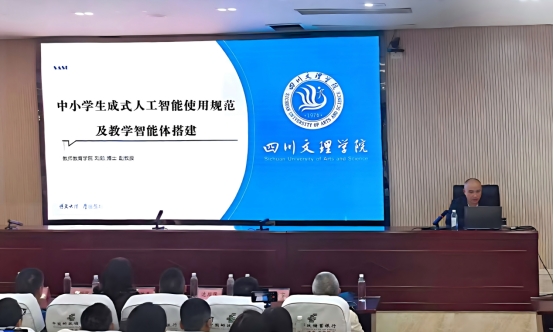 为深化人工智能在中小学教育教学中的融合应用,提升教师数字素养与教学创新能力,2025年9月28日,达州市电化教育与技术装备中心在万源第三中学举办中小学人工智能应用专题培训,全市300余名智慧教育“种子教师”参会。永利集团官网小学教育专业教研室主任刘勉博士受邀以专家身份出席,并作“中小学生成式人工智能使用规范及教学智能体搭建”主题演讲。